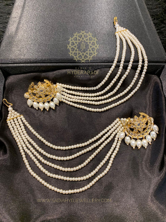 Our wide range includes Jadau Classics like Asif Jahan Haar, Hyderabadi bridal Jewellery Chandbali, Rani Haar, Satlada, Tika Jhumar Mathapatti, Real Pearl/Ruby/Emerald Jewellery, Jugni, Champakali, tirmani and more - each meticulously designed to preserve the legacy of pearl jewellery from Hyderabad.