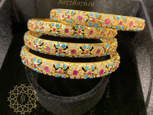 Welcome to the world of Hyderabad bangles, where artistry, tradition and elegance coexist together in each design. Saida Hyd Jewellery is proud to present the finest Hyderabad bangles available on the market, showcasing the artistic and cultural heritage of the city. Known for their intricate detailing and exceptional shine, our collection is a testament to the timeless beauty of Hyderabadi bangles, inspiring every woman to feel regal and radiant. Our bangles in Hyderabad balance both traditional charm and modern flair, satisfying the desire for both.