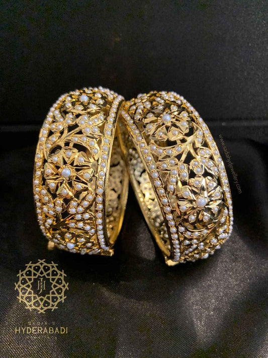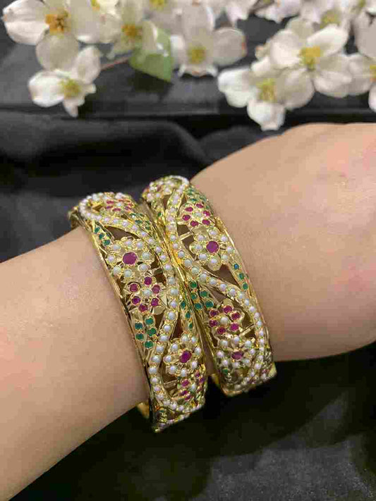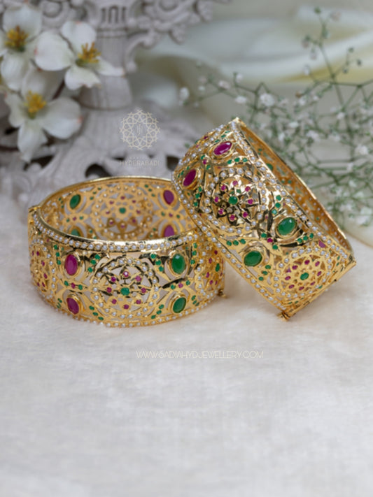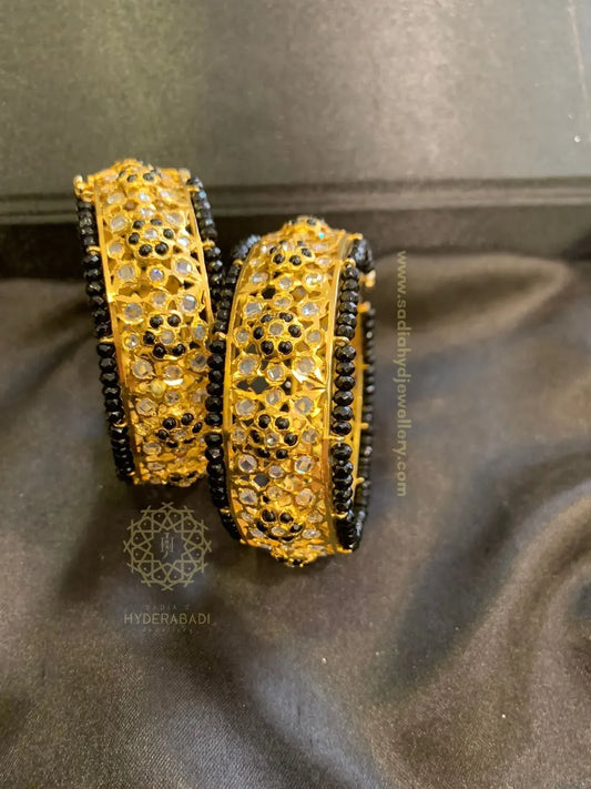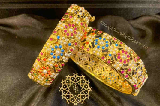 Treat yourself to our spectacular gold bangles for women that demonstrate the beauty of Hyderabad bangles! Our bangles are well made and quality materials reflect a beauty and durability that lasts a lifetime. Sadia's Hyderabadi Jewellery produces gold bangles for women perfect for traditional styles or modern minimalistic designs; we have something for every taste! Hyderabadi bangles are the best of artistry and truth rooted in the heritage of Nizami craft; Wear these masterpieces on your wrist and allow the bangles in Hyderabad to enhance your jewelry collection.