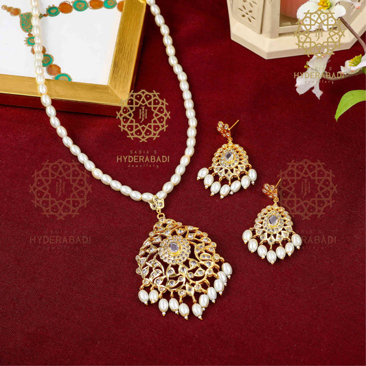 Naba White Pendant Set with Matching Earrings