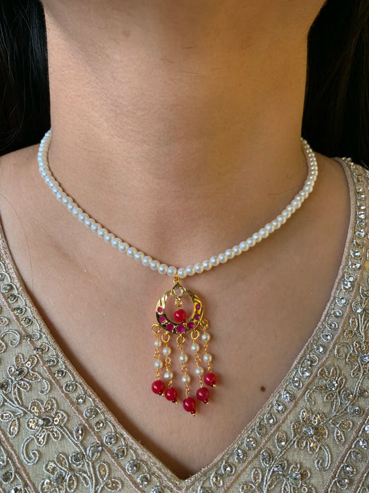 Aziza Red White Small Pendant Set