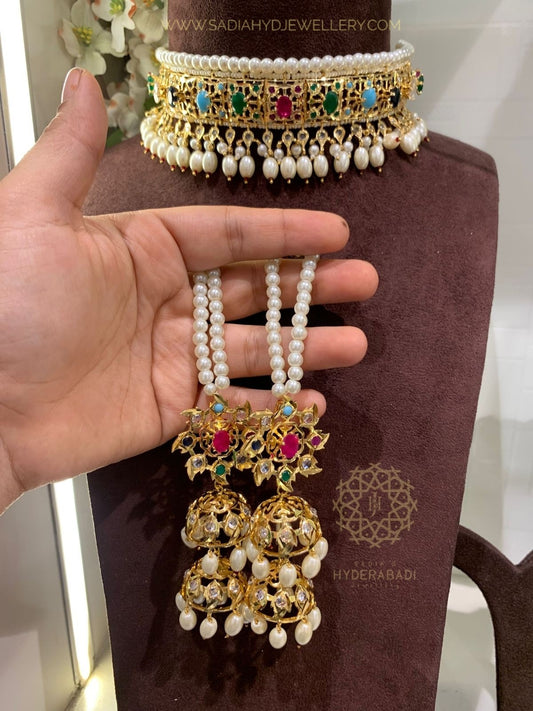 Tuba Multicolored Choker with Double Jhumki
