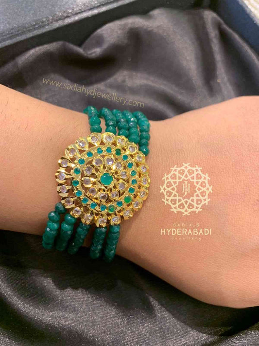 Shop the web to find thoughtfully designed Haath phool bracelet that are traditional, artistic and elegant from Sadia's Hyderabadi Jewellery. From Chandi k haath phool to Haathphool gold our curated collections will not disappoint. Whether looking for regal adornment for the bridal on the one hand or something everyday chic for your loved one on the other, your appointed Haathphool will be waiting here for you. Celebrate the beauty of handcrafted heritage and shop your favorites today.