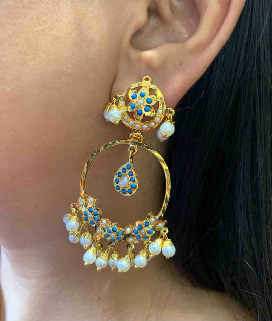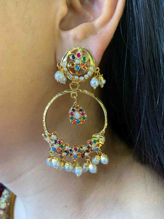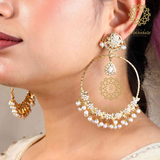 Naushi Real Pearl Silver Plated Layered Chandbali