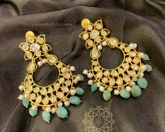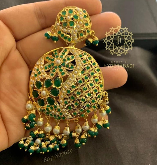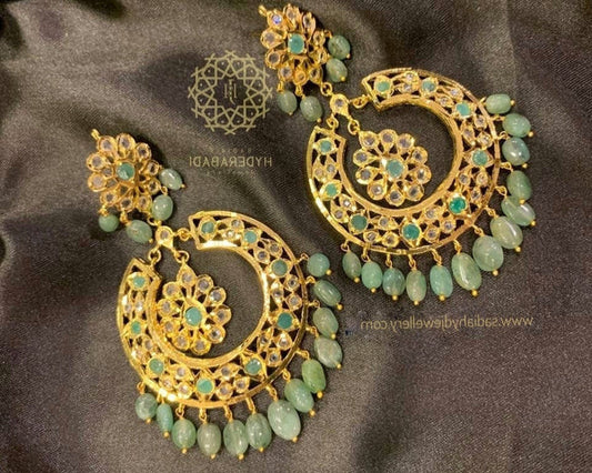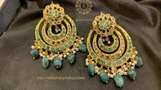 Nigar Real Emerald Real Pearl Gold Plated Chandbali