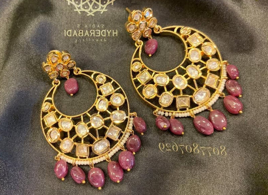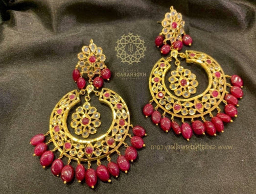 Nigar Real Ruby Real Pearl Gold Plated Chandbali