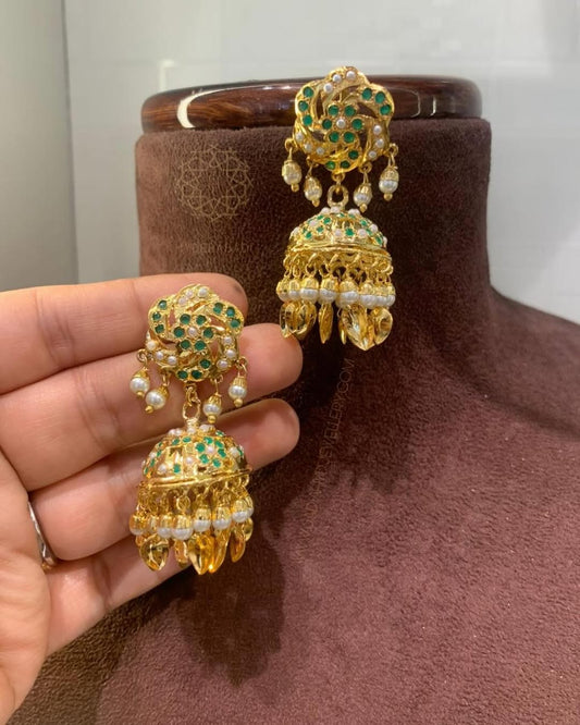 Raeesa Real Emerald Real Pearl Green Kaan Jhumki