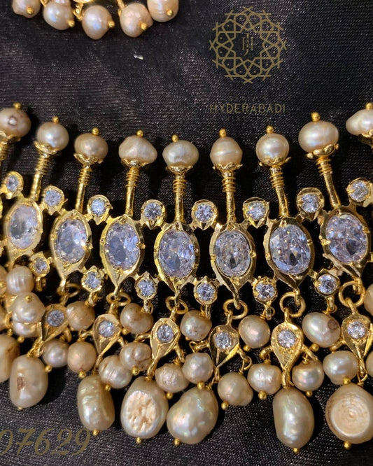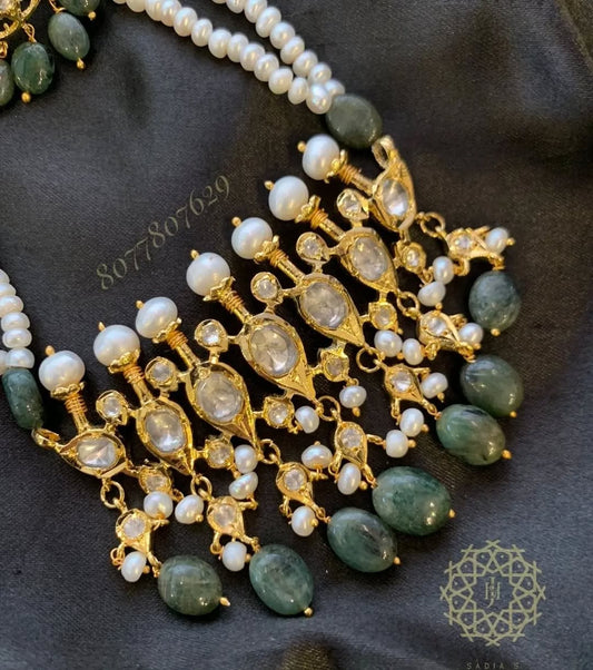 Zahbiya Real Emerald Real Pearl Tirmani Set