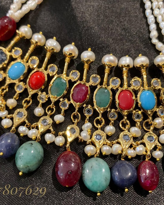 Ramiza Multicolored Real Stones Real Pearl Tirmani