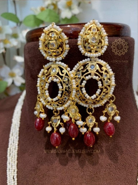 Real Ruby Real Pearl Half Moon Set Earring