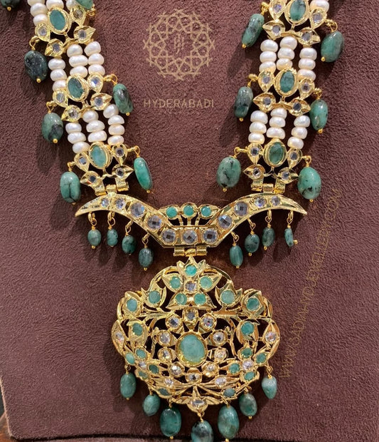 At Sadia's Hyderabadi Jewellery, we take pleasure in presenting collections of the most exquisite pearl rani haar unique to our heritage, craftsmanship and authenticity. Each rani haar necklace is handmade by our exceptionally skilled artisans using premium natural materials with a rich history in our practice. A pearl rani haar necklace - whether it's a unique piece for a bride or special artificial rani haar for outfit coordination - each necklace gracefully embraces the heirloom elegance of Hyderabadi tradition encouraging you to feel royal. Sadia's Hyderabadi Jewellery reflects Hyderabadi tradition for today's women to wear...graceful, royal and unforgettable.
