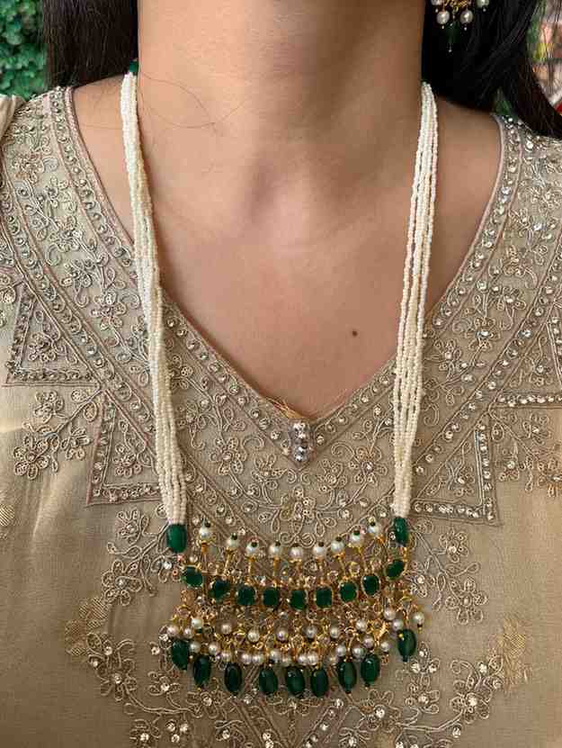 22k Gold Plated Anam Green White Tirmani Set. This one is special for every Occasion that you feel is Special for You and your loved ones. Surely a must have. Get it before it goes Out of Stock. More Color Options also available.