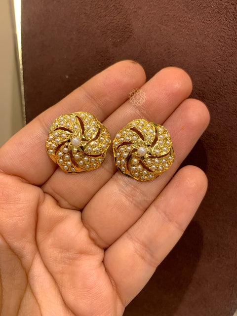 This Imtinan White Tops is a stunning and elegant jewelry piece plated with 22k gold. It showcases a beautiful combination of Polki Stone and White, creating a classic and timeless look. The intricately designed set exudes sophistication and charm, making it a perfect accessory to enhance any outfit with a touch of grace and beauty for special occasions or daily wear.