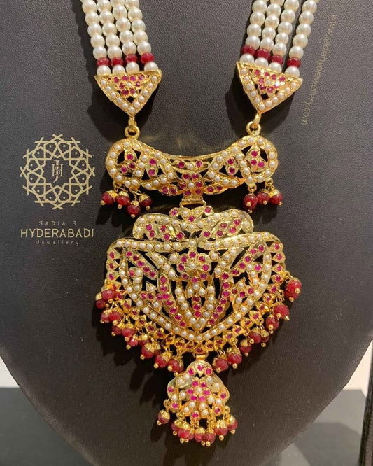Hyderabadi Pearl Jewellery is the only Jewellery which continue its charm for over multiple centuries and the intricacy and elegance of this royal is still loved world over. Whether you are searching for a heritage Necklace Hyderabad design or an iconic bridal piece, Hyderabadi pearls remain unmatched in their cultural significance. Originating from the heart of Hyderabad, this jewellery style holds a prestigious place in Indian tradition and is cherished by Rajasthani elites, film industry celebrities, traditional Gharanas, and modern fashion enthusiasts alike. Our collection features exclusive pearl jewelry in Hyderabad crafted for those who appreciate luxury.